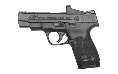 Smith & Wesson Shield M2.0 Performance Center Ported, Semi-automatic, Striker Fired, Compact, Performance Center Tuned Action, Optic Ready Slide, 4MOA Red Dot Sight Included, 40 S&W, 4″ Ported Barrel, Polymer Frame, Black Armornite Finish, 6 & 7Rd, 2 Magazines, Cleaning Kit Included, No Thumb Safety, HiViz Fiber Optic Sights 11798